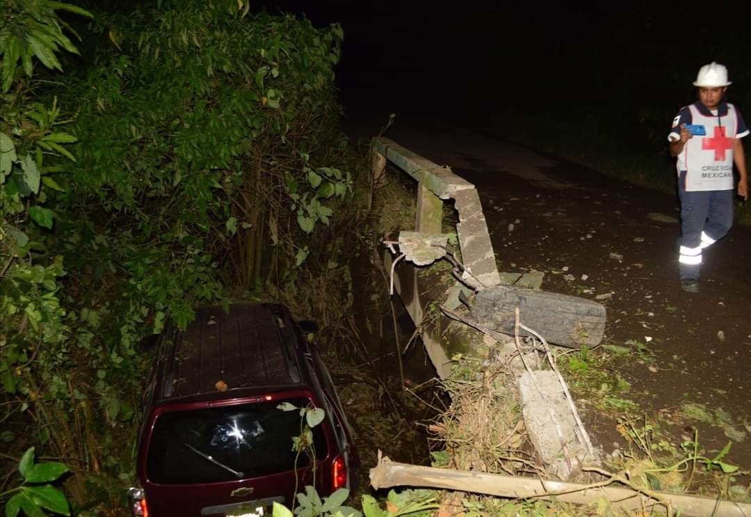 Conductores ebrios destrozan puente en reserva Ruiz Cortines y terminan en arroyo